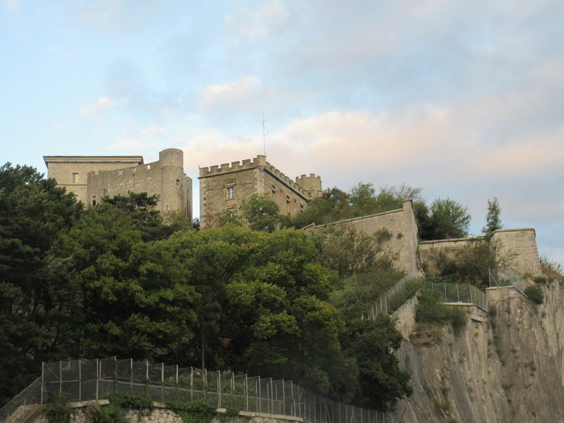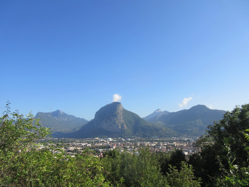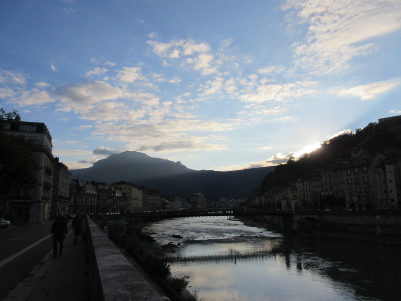 Внезапно нас одолел голод, в поисках кафе мы плелись по набережной, что удивительно, почти все заведения посвящены итальянской тематике. Взяли одну пиццу Маргариту на двоих, за 10 евро - лучшее, что мы смогли найти. Когда мы закончили трапезу, уже совсем стемнело и пора было искать место под палатку. Для этого мы направились к противоположному лесистому холму, на склоне которого был обозначен парк. Поднявшись по тропе, обнаружили неплохую полянку неподалеку от тропы, там и заночевали. С утра нашей наградой был чудесный вид на Гренобль.