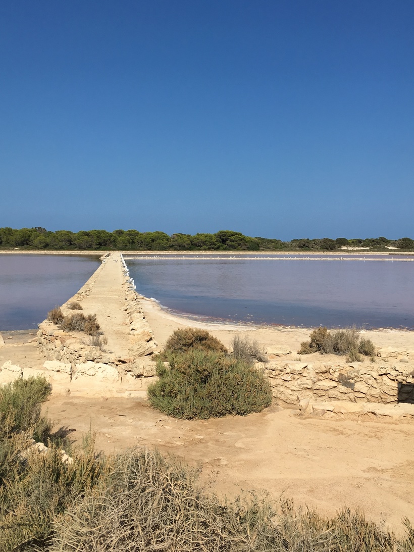 Еще запомнился парк Parque Natural de Ses Salines, проходила мимо и заметила несколько полей/резервуаров с водой разного цвета. Как выяснилось позже, так выпаривают морскую соль.
