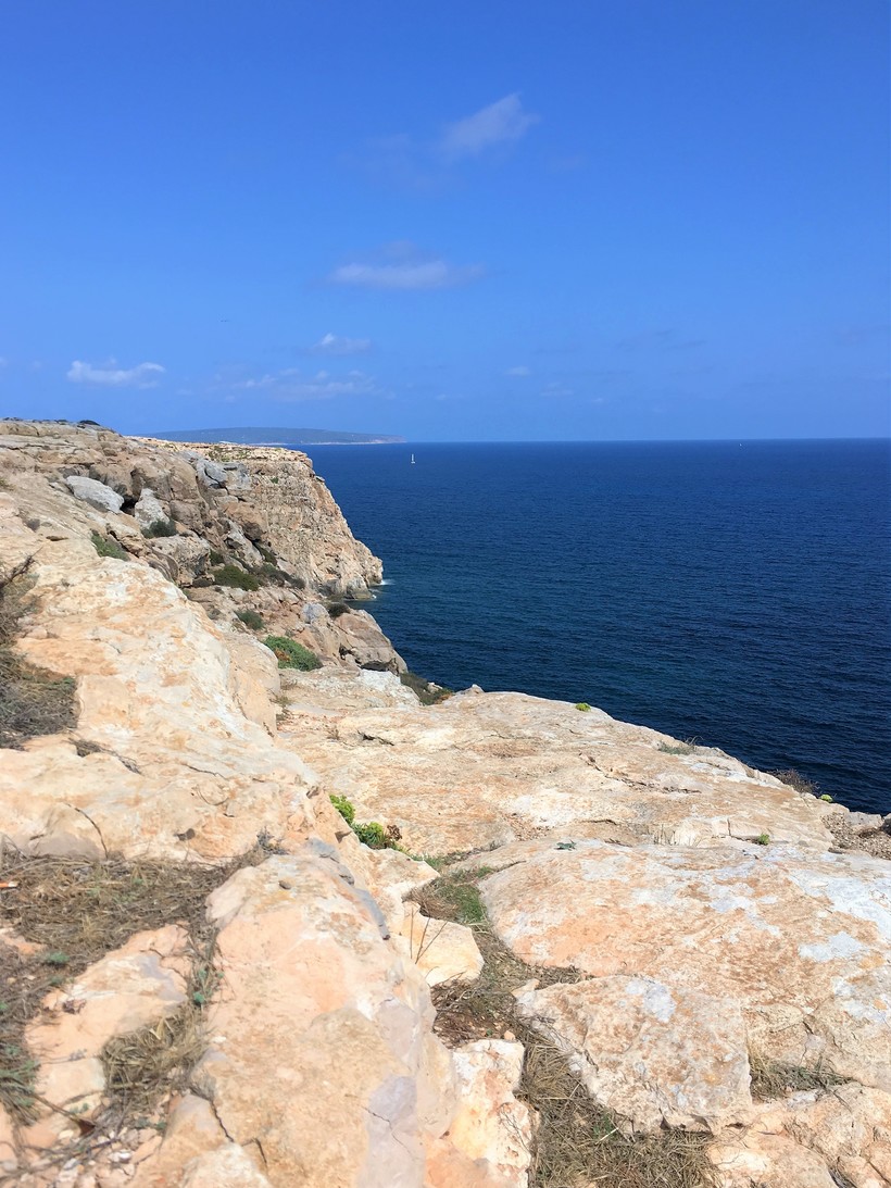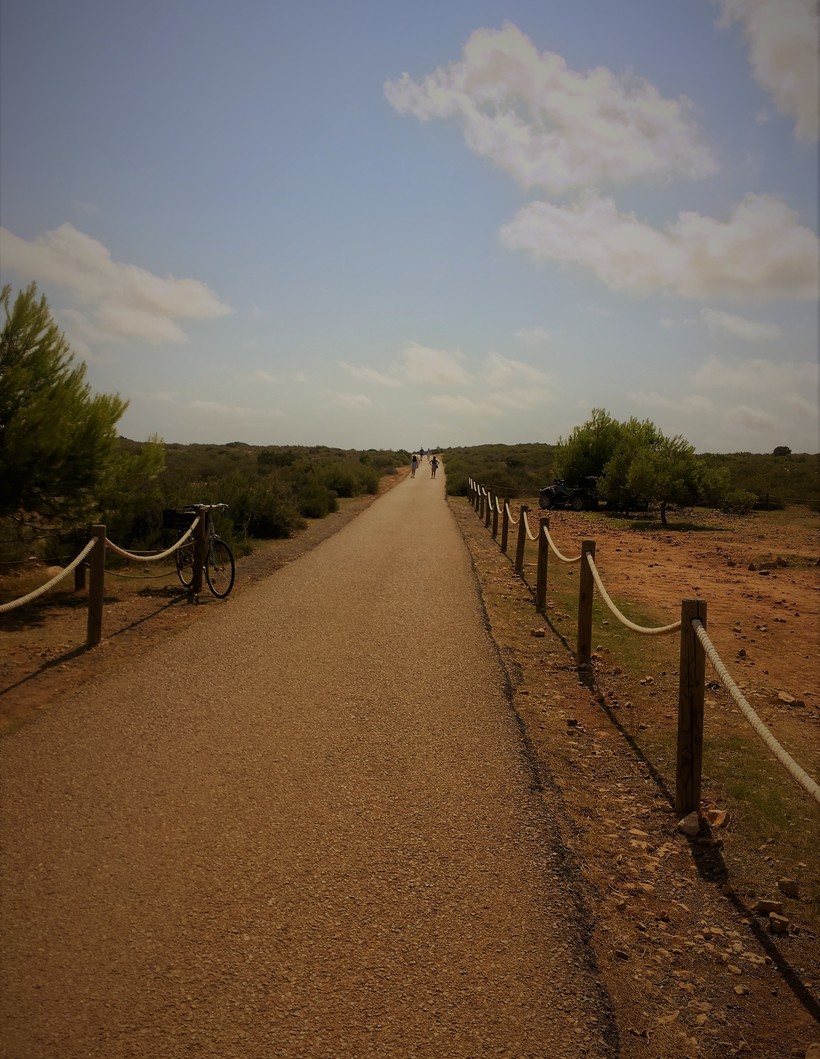 Самым ярким моментом моего одного дня на Форментере стало посещение маяка на мысе Барбария – самая южная часть острова. От парковки нужно преодолеть примерно 2 км пешком до самого маяка. Но это настолько запоминающаяся дорога и ни с чем не сравнимые эмоции – что, не раздумывая, я бы преодолела этот путь еще раз. Дорога до маяка извилиста, из-за чего маяк то пропадал из виду, то вновь появлялся как цель. Туристов даже в разгар сезона было не очень много, поэтому периодически все эти окружающие пейзажи и отсутствие людей на горизонте казалось мне какой-то прогулкой по Марсу.