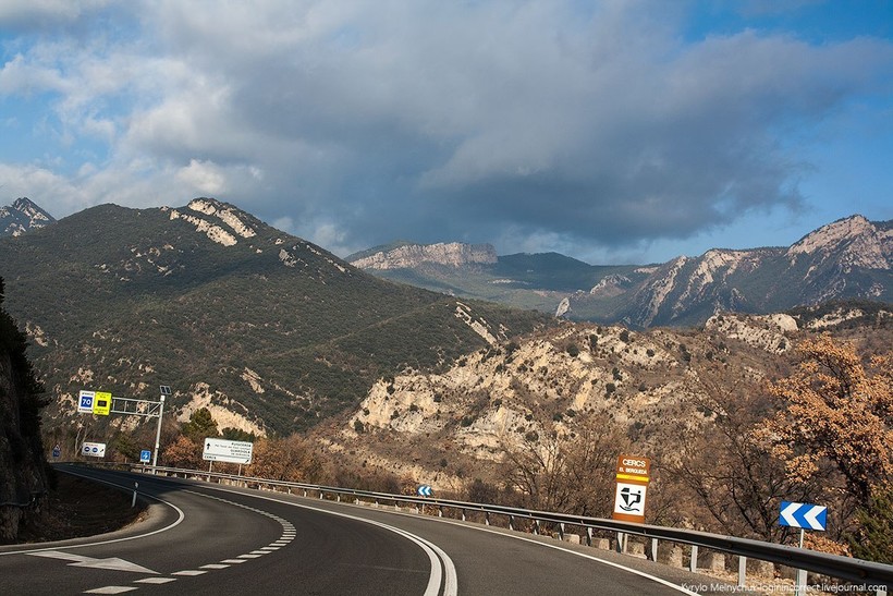 В город мы добирались из Барселоны на автобусе. Несмотря на длительный переезд (добирались около 4-х часов), дорога совершенно не утомила, за окном были прекрасные пейзажи, нас окружали красивые горы.