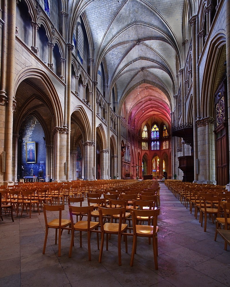 Собор Сен-Сир – это любимая мною готика, причем готика честная, забористая. То есть – множество деталей, удивительных мелких башенок, статуй и резьбы. И ничего я не хочу знать про эклектику (здание перестраивалось), с задней части это натуральная готика и есть. Но все-таки нет в нем той устремленности ввысь, что свойственна поздним готическим соборам. Тем не менее, Неверский собор это совершенно не портит.