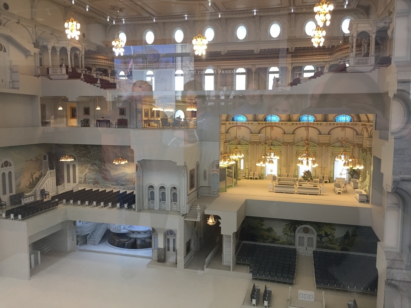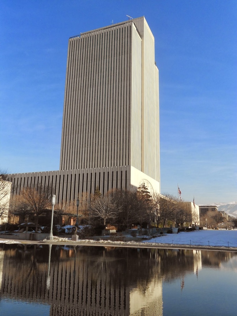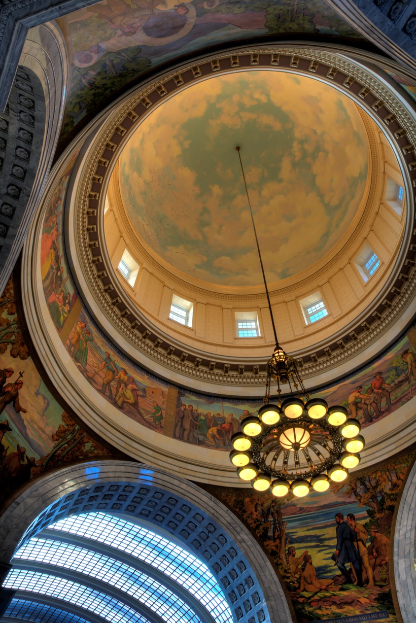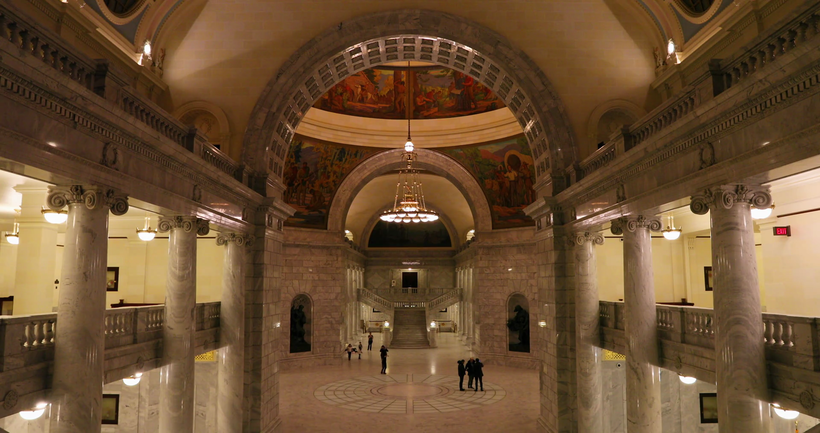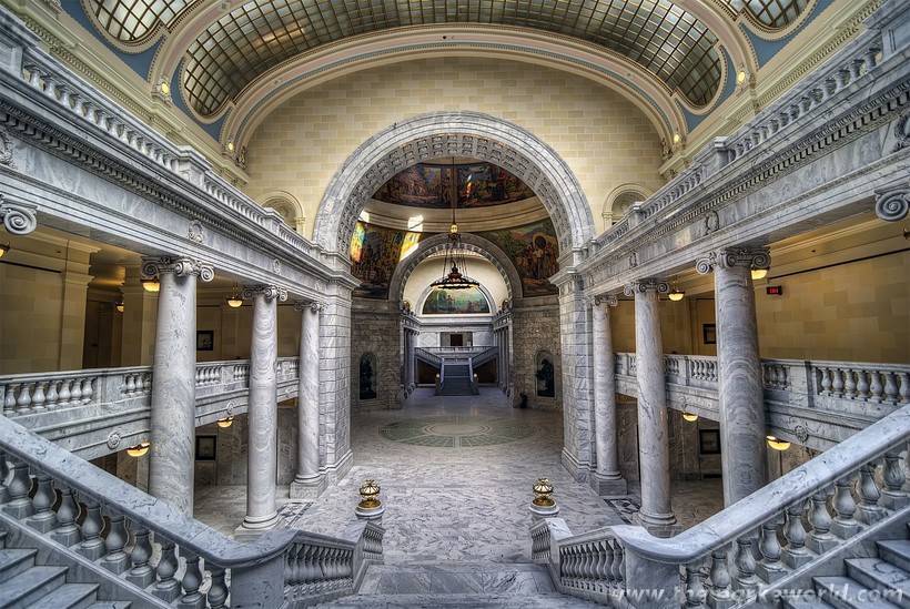 Несмотря на то, что Капитолии штатов почти везде одинаковые, во время нашего американского путешествия мы собрали целую коллекцию с их изображениями на фотографиях. Ютовский Капитолий возвышается над городом, располагаясь на холме. Нам повезло и мы смогли попасть внутрь, так как иногда двери Капитолия открываются для посещения простым смертным. Внутри стоят различные статуи и скульптурные изваяния, а стены его залов расписаны в ручную узорчатыми рисунками.