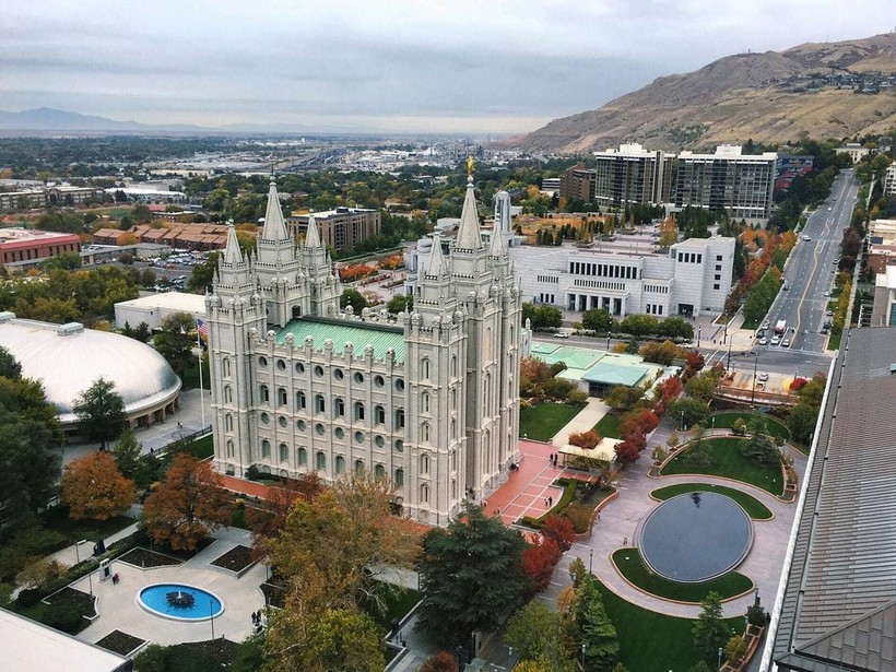 Как нам поведал Дэйв, город строили по определенному плану поэтому передвигаться здесь очень удобно как пешком, так и на автомобиле. В городе сохранилось много исторически важных архитектурных памятников в виде жилых, административных и "духовных" зданий. Одно из них является визитной карточкой Солт-Лейк-Сити - Храм Мормонов. Это высокое и изящное строение, тянущееся пиками своей крыши вверх - к небесам. Его возведение закончили еще 1893 году, однако, заходить внутрь могут только мормоны, что меня немного огорчило, поэтому Дэйв показал на фотографиях внутреннее убранство и оно нереально восхищает.