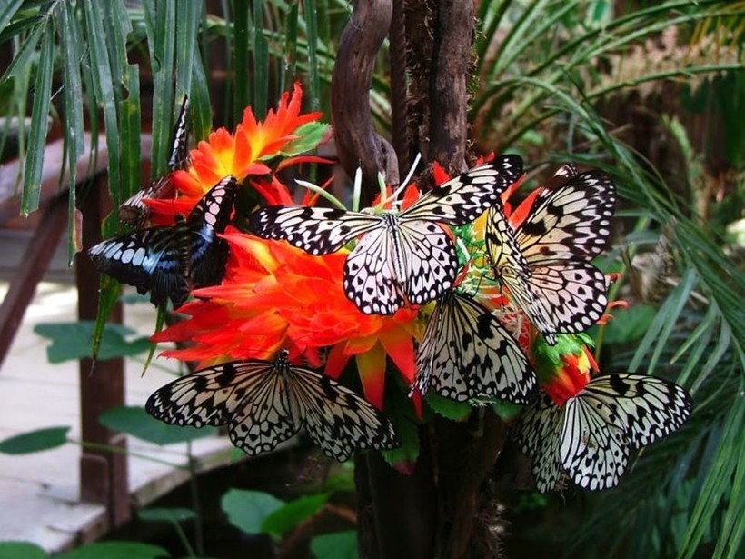 Еще одно развлечение в стиле "порадовать глаз" - это парк бабочек. Но за это удовольствие нужно заплатить 9 евро. Сам павильон небольшой, но количество бабочек просто зашкаливает. Они садятся туристам на голову, охотно едят бананы и яблоки. Но экскурсовод говорит только на итальянском языке, поэтому узнать происхождение жителей парка нам так и не удалось.