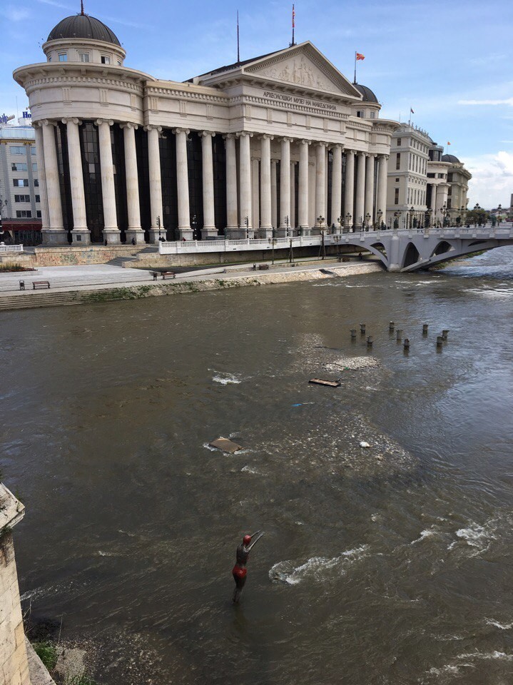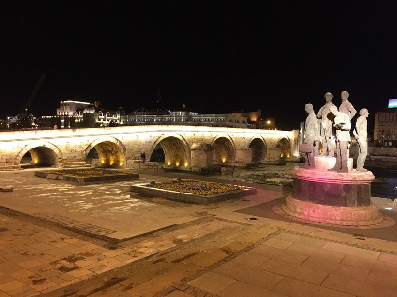 Центральная часть города Скопье меня поразила. Во-первых, имея огромное античное наследие, они не особо заботятся о древних экспонатах – всякие каменные артефакты с историей не в одну тысячу лет лежат прямо перед музеем на улице. Я думаю, если вдруг один из них уведут, это заметят далеко не сразу.