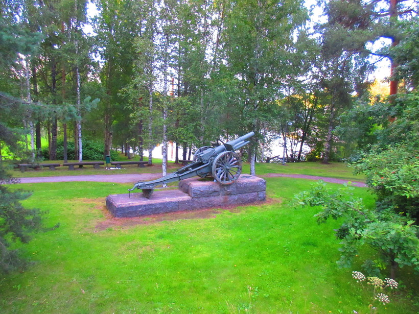 Водители такого транспорта не очень стремятся подбирать на дороге незнакомцев, нам так ни разу и не удалось застопить подобное чудо туристической техники. Мы долго шли по шоссе от Ювяскюля, показывая табличку всем проезжающим. Нам не везло, и мы потихоньку набрели на небольшой парк возле озера, где сделали привал.