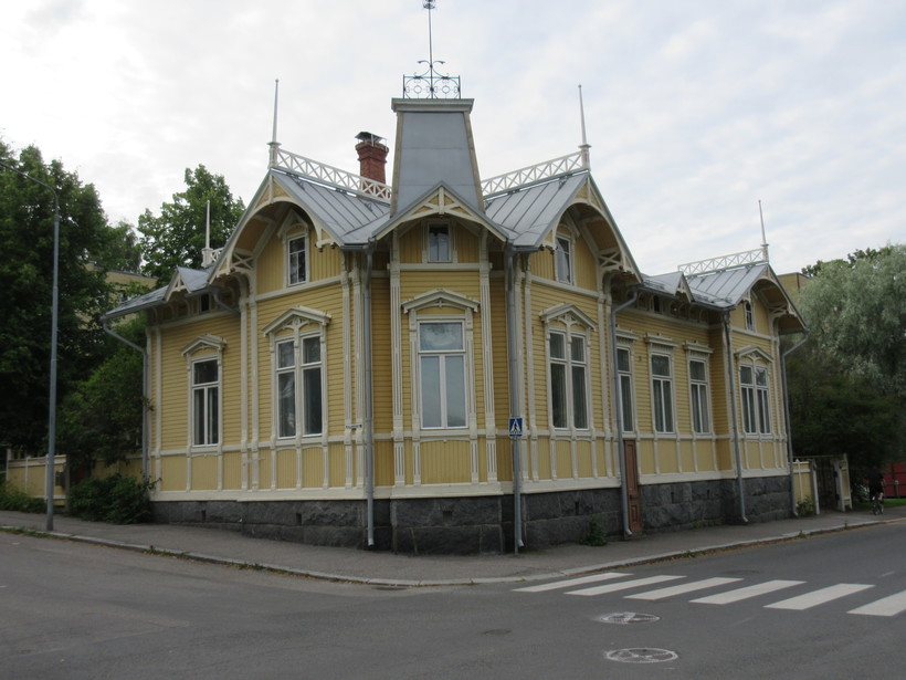 Утром пошли пешком до города, по пути отмечаю симпатичность городка и любовь финнов к деревянному зодчеству.