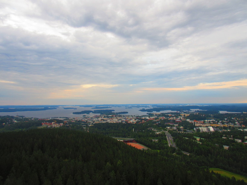 Но визитной карточкой Куопио является Башня Пуййо, которая находится на горнолыжном склоне холма на окраине города. Чтобы добраться до нее можно прогуляться по лесным тропинкам или доехать по дороге на авто, мы выбрали первый вариант. Сама башня высотой всего лишь 75 метров никого не удивит, но вид с обзорной площадки действительно впечатляет.