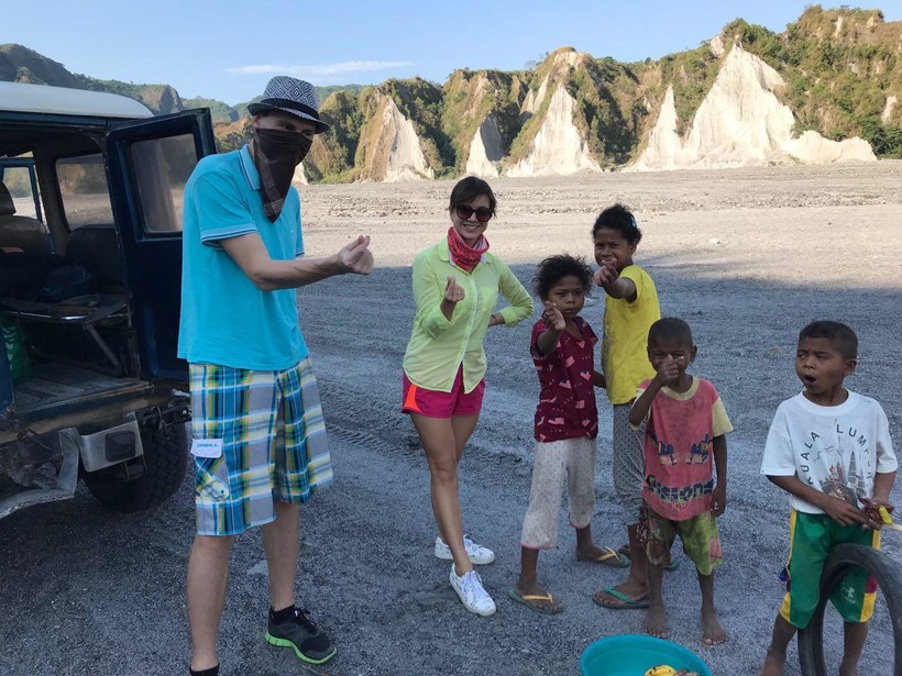 После Манилы мы отправились знакомиться с вулканом Пинатубо. На автобусе мы доехали до города Анджелес. Там переночевали и рано утром на джипни и трициклах добрались до места старта экскурсии. Если хотите использовать такси, постарайтесь забронировать заранее, т.к в 4 утра мы не нашли машины и пришлось ехать на джипни. Самостоятельно добраться до вулкана нельзя, только в составе экскурсии, дорога до вулкана находиться на территории американской военной базы. Экскурсию мы тоже бронировали заранее, кто соберется – напишите мне, я дам контакты. Каждое утро около 10-15 джипов с открытым верхом или нет отправляются по руслу высохшей реки к вулкану. Пейзажи завораживающие, чувствуешь себя как в фильмах про космос или пост апокалипсис.
