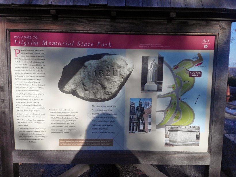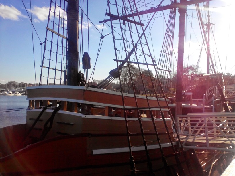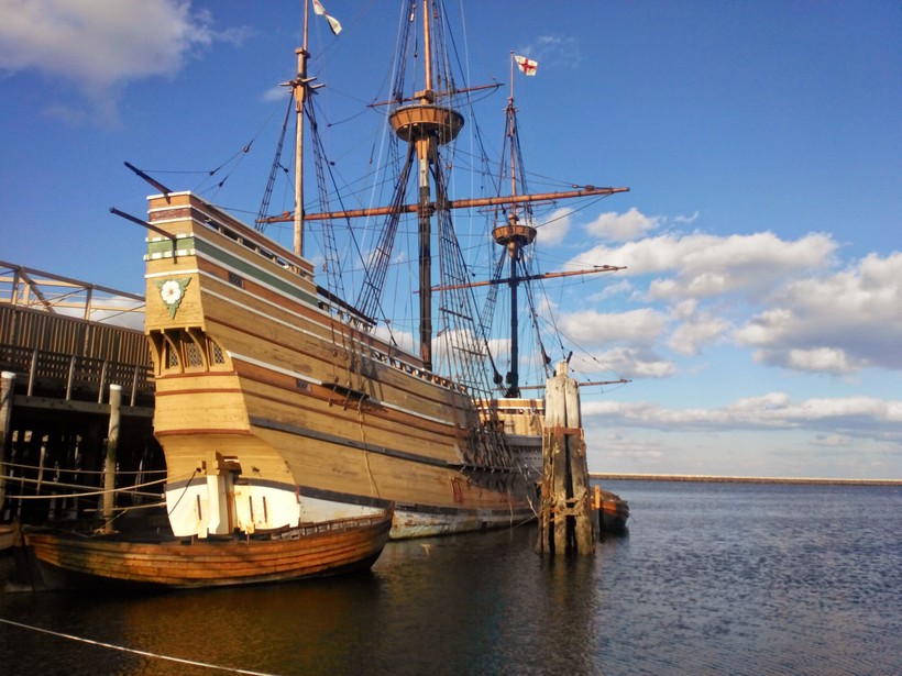 Городок Плимут манил нас своими историческими событиями, ведь именно тут высадились пилигримы на своем деревянном корабле Мэйфлауэр. Сейчас в порту стоит его точная копия, куда можно сходить на экскурсию. Рядом с кораблем имеется этнографический парк "Плимут Плантэйшен", где волонтеры бесплатно рассказывают об истории образования великой державы. Тут же воссозданы индийское и колонистское поселения, а также лежит камень, на который ступила нога первого переселенца.