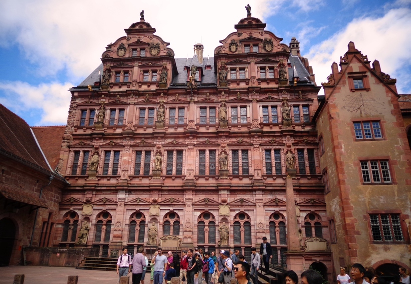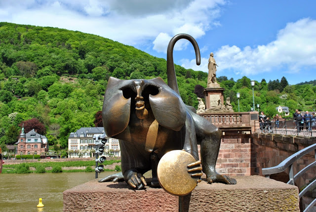 На мосту есть еще один популярный памятник – обезьяне. Я думала сначала, что это очередной современный памятник, установленный для увеселения многочисленных гостей города, но оказалось, что в Гейдельберге все-таки любая вещь имеет за спиной какую-то историю. Так и с этой обезьянкой. Упоминания о ней, как говорят, были уже в XV веке, она встречала всех входивших в город, потому что в давние времена это был единственные вход в Гейдельберг.На самом деле, очень интересно рассматривать этот полуразрушенный архитектурный объект, потому как детали интерьера замка часто видны в разрезе. Гулять здесь можно часами, особенно если вы человек заинтересованный, поэтому рекомендую выделить под посещения замка не меньше половины дня, а то и целый, если заглянете в музей и решите отведать вина – даже это здесь можно!