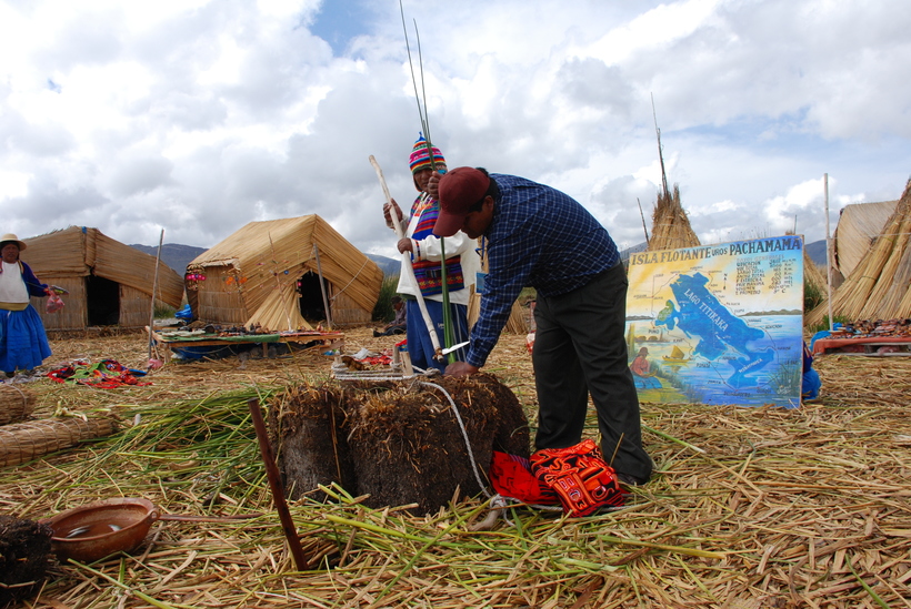 Люди особым образом, используя тростник, создают «платформы» толщиной в несколько метров и площадью в десятки квадратных метров, которые не тонут и держатся на воде. И вот на таких островах живут, строят свои дома их тростника, лодки из тростника. Мигрируют от одного острова к другому. Такое вот тростниковое царство.