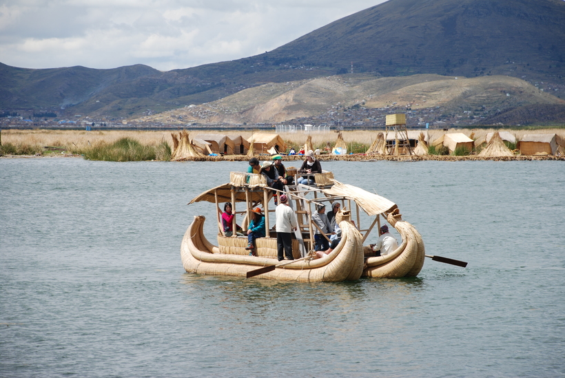 Экскурсии по изучению жизни озера Титикака у нас начинались из Пуно. Мы сели в моторные лодки и отправились знакомиться с жизнью необычного народа уру, который издревле жил на Титикаке на плавучих тростниковых островах. Их называют Урос.