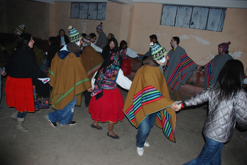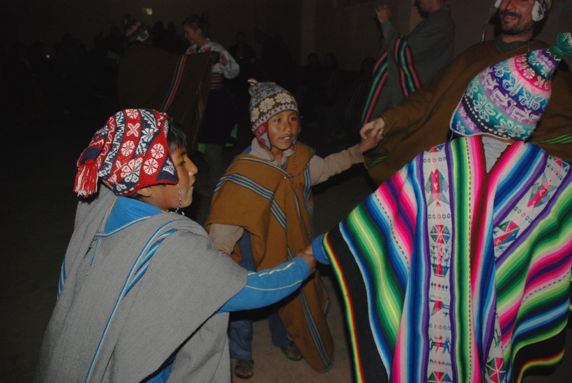 Вечером нас нарядили в традиционные наряды перуанского населения (блузы, юбки, шарфы для девушек), парням дали пончо – традиционную накидку мужчины в Перу. И, таким образом, еще больше погрузившись в местный колорит, мы отправились в «клуб» острова, где взрослые и дети готовят гостям с «большой земли» веселье.