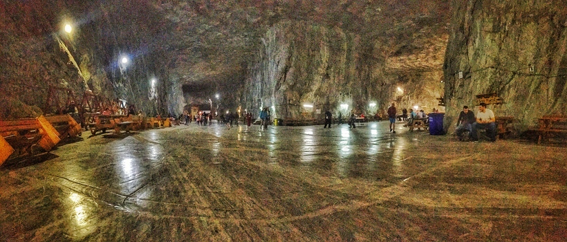 Побывать в подземных соляных шахтах Salina Praid. Вот это развлечение обязательное, если вас судьба занесет в Совата. Именно за ним мы и приехали в этот мало кому у нас известный санаторный поселок. В 10 км от Совата находится бывшая соляная выработка Салина Прайд – одна из самых больших в Европе, которую открыли много веков назад жители Римской империи. Огромные подземные шахты и пустоты, которые предприимчивые румыны превратили в подземный парк развлечений. Добычей соли здесь занимались испокон веков, несмотря на то, что шахты довольно старые, их своды очень крепкие и надежные – как никак гранит. Итак, как в них попасть? купив билет за 30 лей нужно сесть в автобус, который курсирует в шахту и обратно каждые 15 минут. Пешком внутрь Салина Прайд попасть невозможно. Автобус завозит внутрь скалы, едет минут пять по горным тоннелям и привозит к месту спуска в подземные чертоги. Спустившись по лестнице попадаешь в огромные каменные залы, в которых есть множество развлечений для всей семьи: веревочные парки, батуты, качели, теннисные столы, столики для пикника, кафе и бары, сувенирные магазины и даже своя церковь под землей – вдруг кому-то приспичит помолиться. Чем здесь занимаются люди? В основном в Салина Прайд приезжают семьи с детьми – детям тут очень интересно, взрослым тоже есть чем заняться. Многие берут с собой детские велосипеды и самокаты, бадминтон, ракетки для настольного тенниса, мячи. И соответственно играют, развлекаются, и даже бегают по шахтам – здесь воздух напитан солями и считается очень полезным для здоровья. За веревочный комплекс, батуты и аренду спортинвентаря приходится платить отдельно – порядка 25 лей. Мы просто ходили и рассматривали этот удивительный подземный парк развлечений Салина Прайд – не заметив, как пролетело четыре часа под землей. Многие приезжают на целый день. Очень рекомендую – это стоит увидеть своими глазами, и втихомолку проверить соленость стен – лизнуть ненароком (они таки да – соленые).