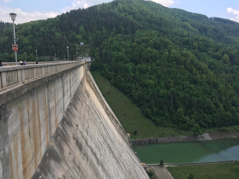 Если проехать еще 30 км на запад, то попадешь на огромное водохранилище Изворул Монтенул и дамбу с тем же названием - Биказ. Водохранилище действительно очень большое, по нему даже курсируют туристические кораблики, вдоль него расположено множество дачных поселков и спортивных баз отдыха. А дамба поражает своей высотой и размерами – в ней находится турбина электростанции, эта махина сдерживает миллионы тонн воды и выглядит массивно и внушает трепет и уважение.