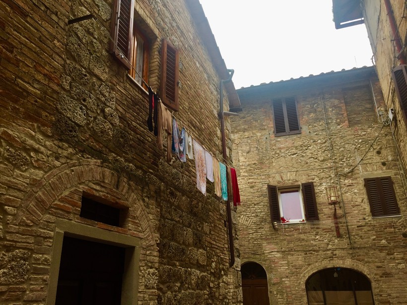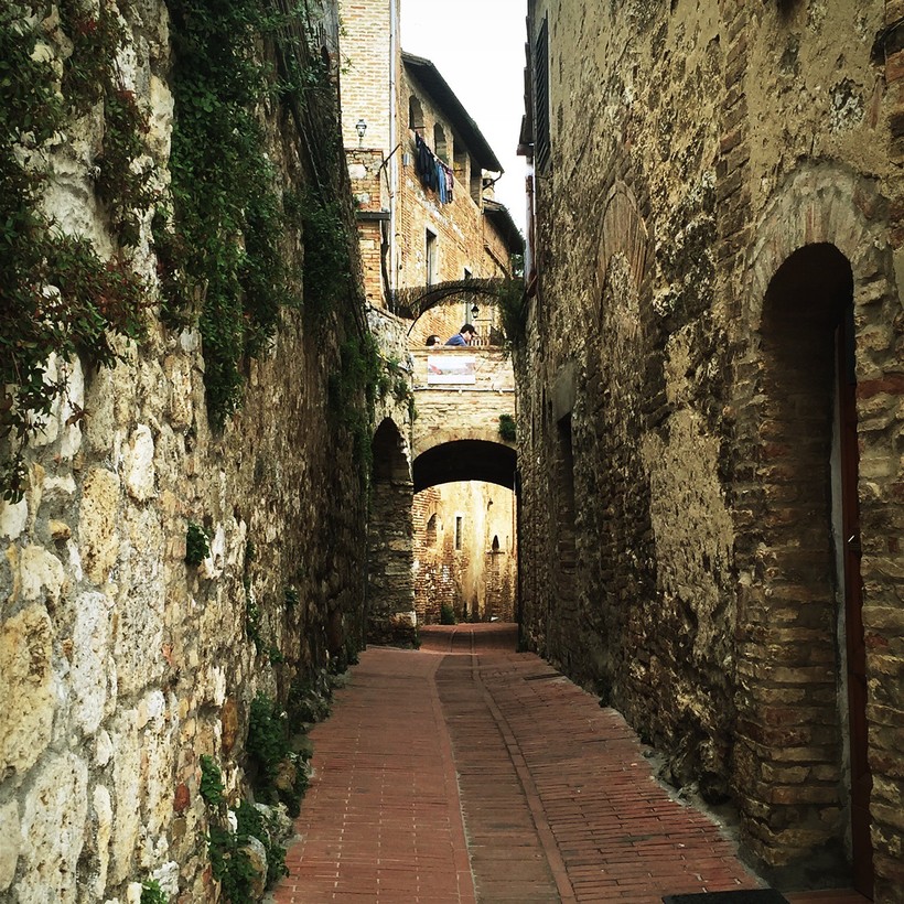 Машину нужно оставить на парковке, а дальше отправляться в пешее путешествие по улочкам города. Можно просто бродить, разглядывая старые дома, в которых ( в это трудно поверить) и сейчас живут люди. Фотографировать окна и двери, развешанное по итальянской традиции прямо на улице белье, узкие проходы, а потом неожиданно оказываться на больших площадях, главными из которых являются треугольная Piazza della Cisterna, украшенная живописным колодцем и Piazza del Duomo, на которой располагаются такие примечательные зданий, как Старый дворец подесты, а также палаццо с башнями и главный храм.