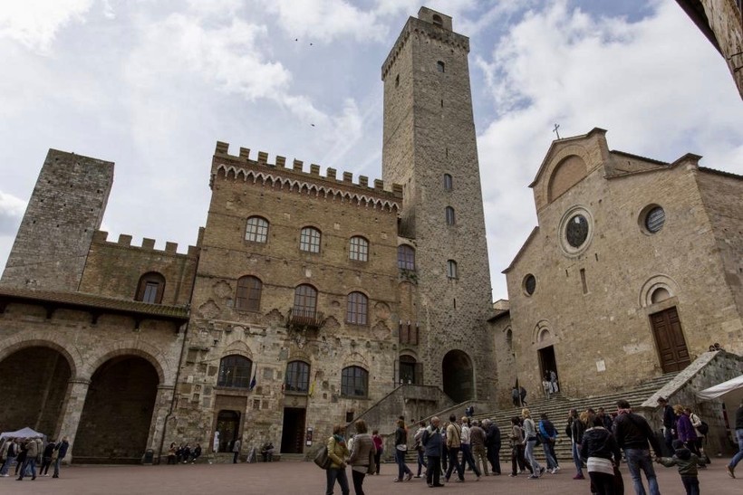 Сан-Джиминьяно находится приблизительно в 40 км к юго-западу от Флоренции. Уже на подъезде к городу открывается потрясающий вид. Город окружен стеной постройки 13 века, но знаменит, в первую очередь теми самыми башнями, построенными в 16-17 веках. Такие башни возводили знатные семейства Италии для того, чтобы продемонстрировать свое богатство и значимость. Многие из них и по сей день хранят в своих названиях фамилии знаменитых родов. Раньше подобные башни, которые называют "средневековыми небоскребами", были и в других городах, например, во Флоренции или Сиене, однако, со временем их снесли. Именно то, что в Сан-Джиминьяно башни остались нетронутыми, делает этот город уникальным и таким популярным у туристов.