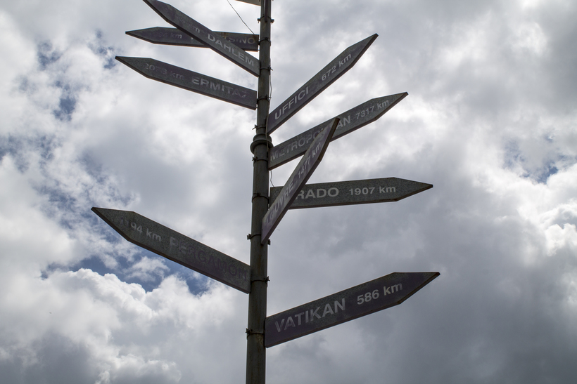 Указатель расстояний в Цетинье показывает насколько близка культура всего земного шара городу в километрах.