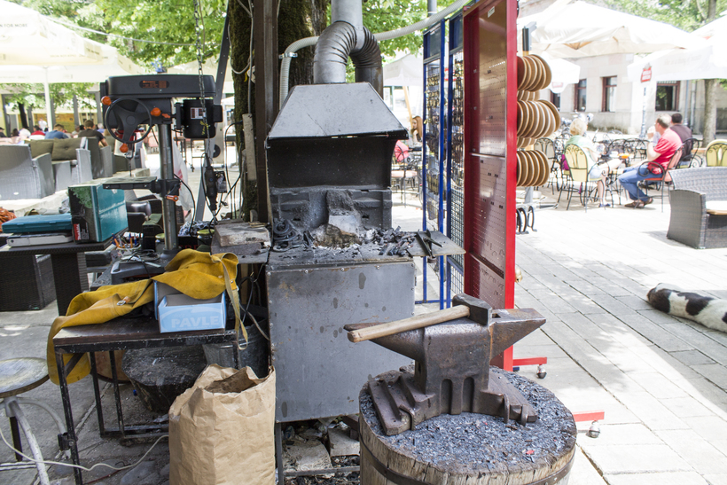 Знаменитая сувенирная лавка кузнеца Богдана Марцано. Богдану Марцано уже за 60 лет, но он очень энергичный и веселый человек. Он все делает под музыку с песнями и плясками. Танцует рок-н-ролл под старинную шарманку за спиной, поет и при этом выковывает подковы и колокольчики. За один день он может выковать 30 подков. На подкове, прямо при вас может сделать любую гравировку и приладит ее на дощечку с пожеланиями удачи, изобилия и процветания. К сожалению, я попала туда во время сиесты, и мне не удалось увидеть Богдана Марцано, зато подков, выкованных им, накупила Говорят, что эти подковы приносят счастье, благополучие и мир в семьи, богатство и уют в дом Фото сделано у лавки, прямо на месте и возле инструментов, где дедушка Богдан их кует.