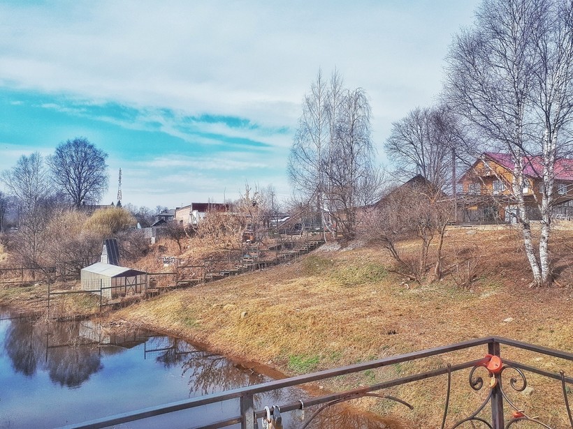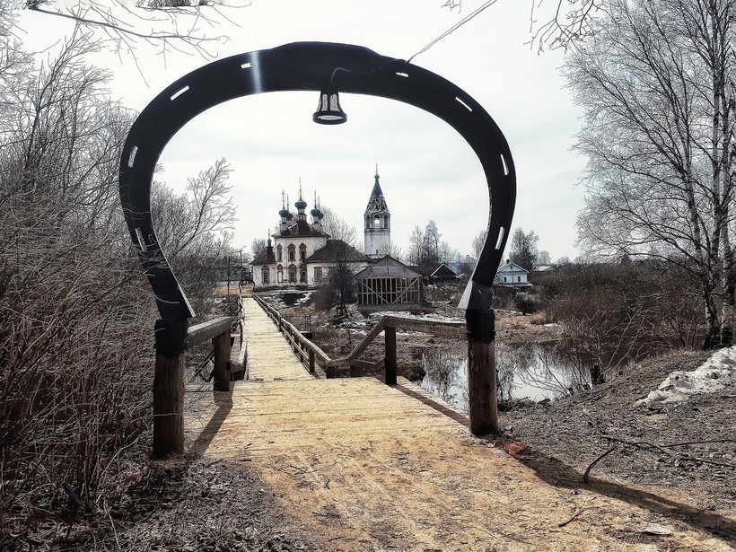 В общей сложности я провела в Устюжне около двух часов. Больше всего мне понравилось гулять возле Благовещенской церкви. К ней от центральной части города ведет живописный мост с колокольчиком через реку Ворожа – так называемый Козий мостик, построенный купцом Козловым и смешно названный в его честь.