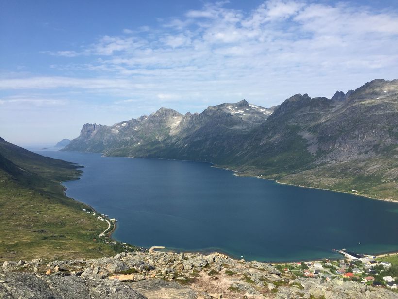 После плотного ланча нужно обязательно поехать к фьордам и по экологической тропе забраться на вершину, чтобы посмотреть окрестности. Не забудьте взять с собой удобную обувь и одежду. Мне повезло, со мной поделилась семья, в которой я осталась. Наверху хоть солнце и греет, но ветер бьет в лицо. Подниматься несложно. Для всех, кто любит ходить пешком, это не составит никакого труда. Советую немного свернуть с маршрута, чтобы уединенно посидеть на камне и полной грудью вдохнуть этого пленяющего ароматного воздуха северной Норвегии.