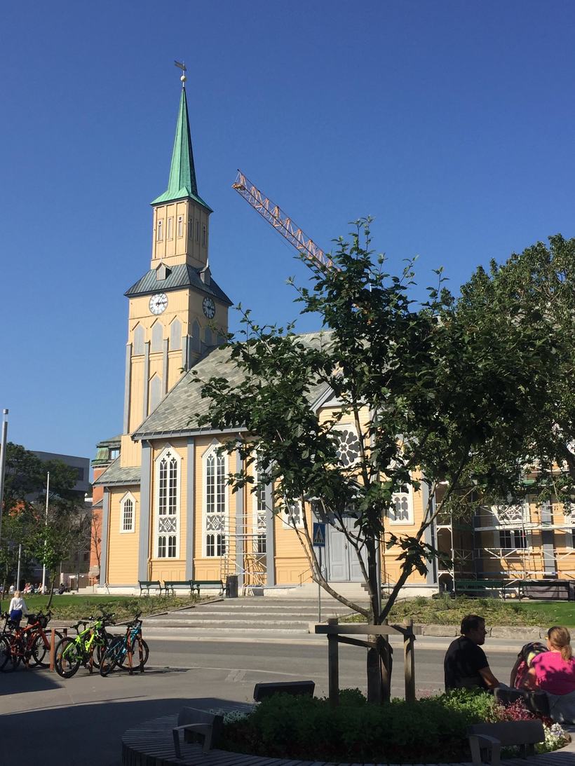 Теперь можно спокойно гулять, не пытаясь скрываться от коктейля пронизывающего холодного ветра и яркого теплого солнца. Вышла я к деревянной церкви, которая, как оказалось является самым северным католическим кафедральным собором в мире.