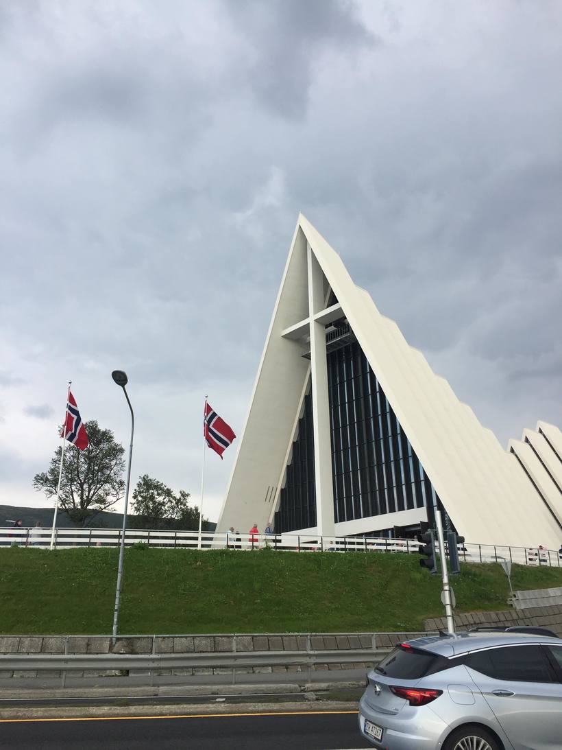 Идя по мосту, сразу утыкаешься в Арктический собор - белая лютеранская церковь, похожая на айсберг. По-моему, венец, эпохи северного модерна.