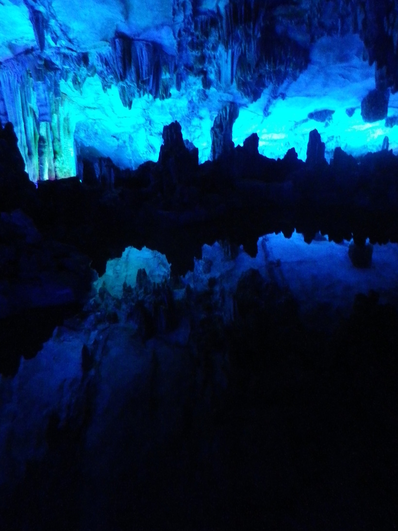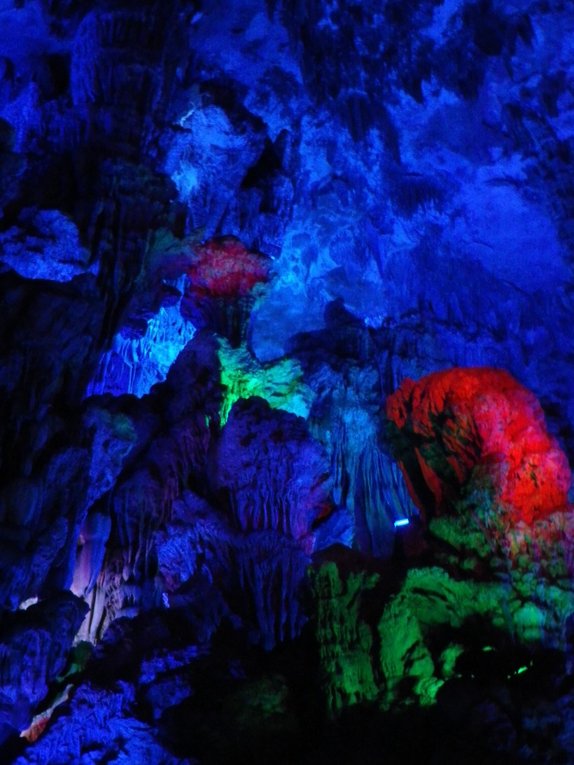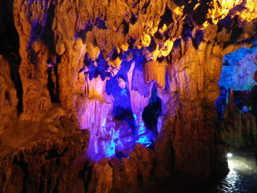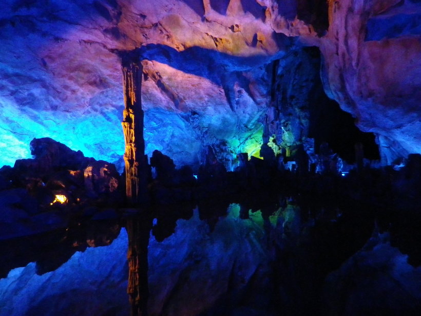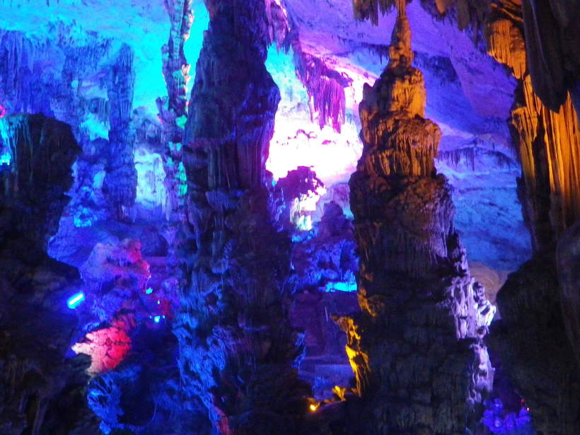 Еще одно понравившееся мне место – это Пещера Тростниковой Флейты, находящаяся в парке Сишань, что на северо-западной окраине Гуйлиня. Она представляет собой целый ряд залов с подсвеченными разноцветными лампами сталактитами и сталагмитами самых разных размеров и форм.