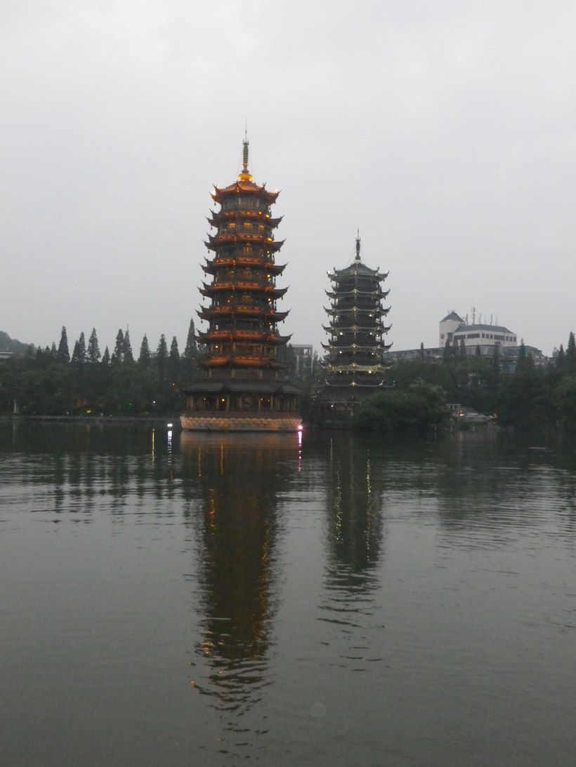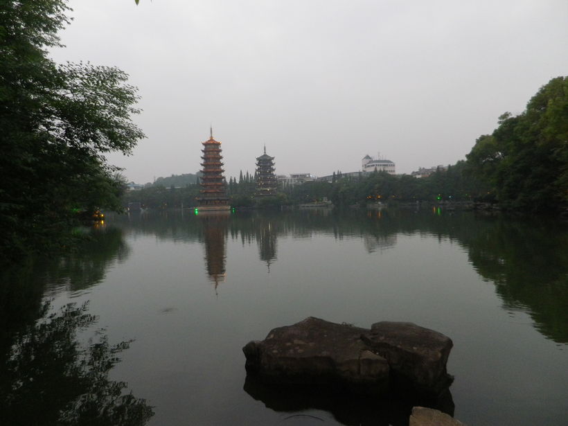 Что касается центра города, в котором мне довелось пожить как в дешевом хостеле, так и в дорогом отеле, то обязательно советую осмотреть необычную водную систему, состоящую из целой сети рек, каналов и небольших озер, обозначенную в путеводителях как «Guilin Two Rivers & Four Lakes Scenic Area».