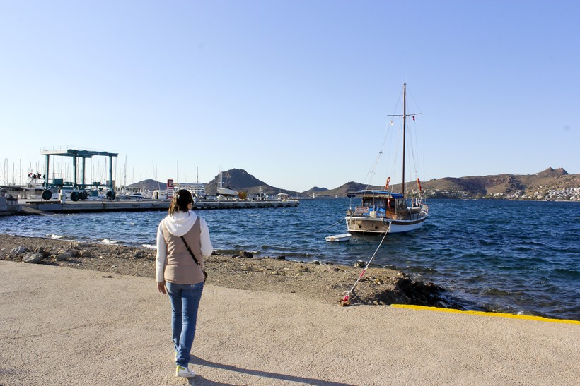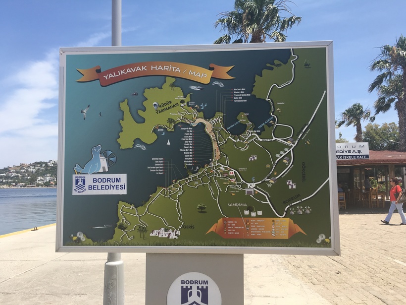 - Маршрутки до Ялыкавака ходят от автовокзала Бодрума, четкого расписания нет, отправляются, как только соберется достаточное количество пассажиров (примерный интервал - 30 минут). Интенсивность движения невысокая, пробок практически не бывает, за исключением случаев аварии или дорожных работ. Дорога красивая, вдоль холмов, с одного из них открывается шикарный вид на побережье. Там же есть смотровая площадка с небольшим карманом для парковки, можно остановиться и пощелкать фотоаппаратом.