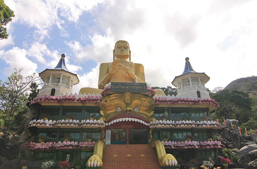 Достопримечательностей в Дамбулле, по сути, две. Это Золотой храм и Пещерные храмы. Иногда происходит путаница, и все вместе называют Золотым храмом. Но это два отдельных объекта. Золотой храм находится у подножья горы, а чтобы попасть в Пещерные, надо подняться по левому склону примерно на 80 метров. Впрочем, посещают обе достопримечательности по единому билету.