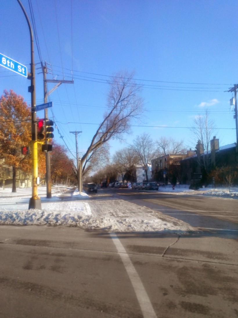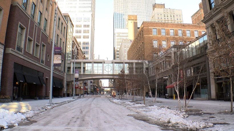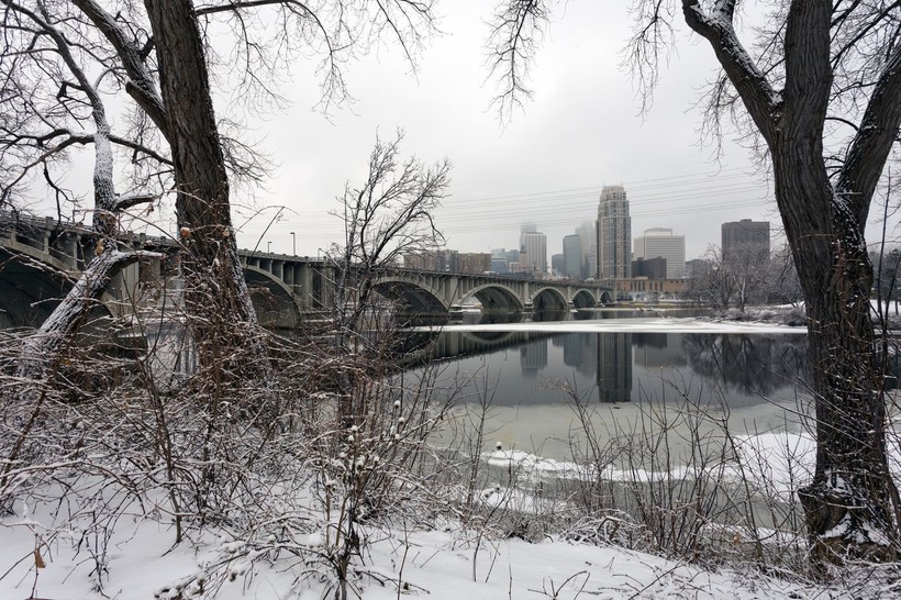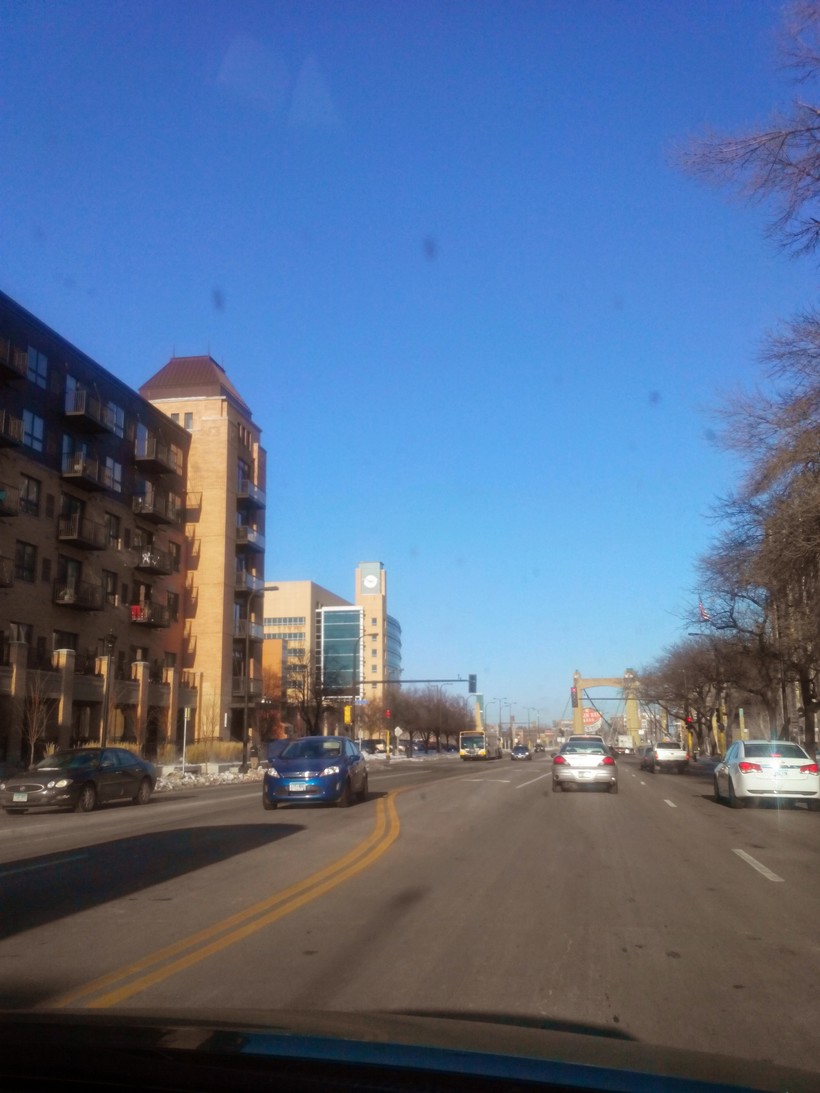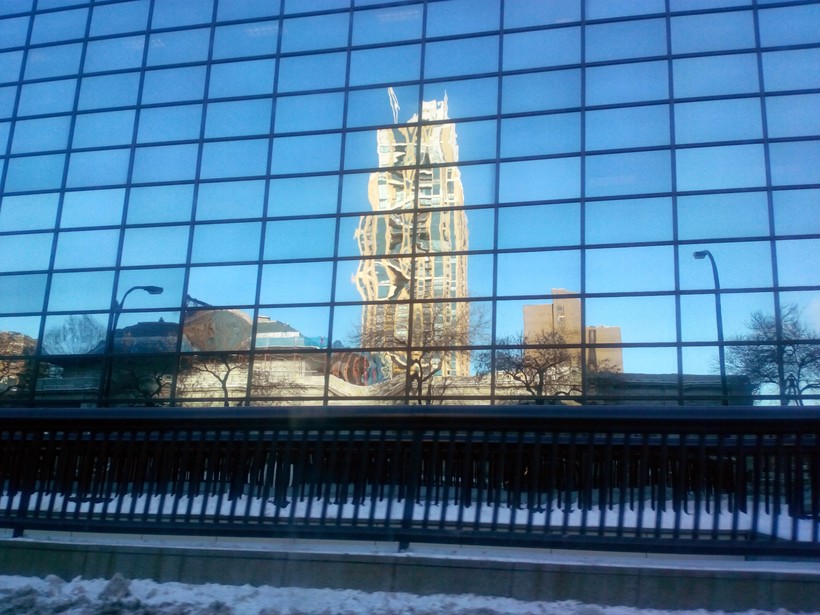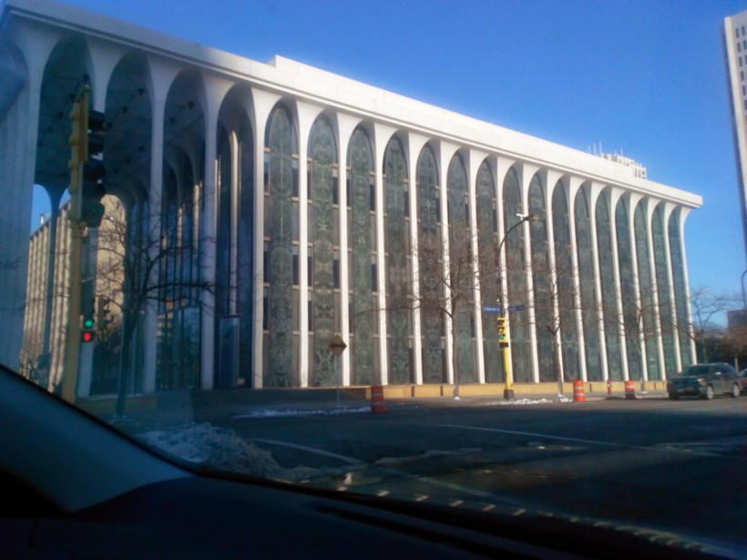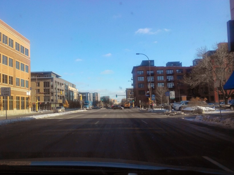 Миннеаполис прекрасный город, крупный мегаполис, но поздней осенью очень уж холодно в нем. Мы доехали до него уже, когда снег плотно покрыл улицы, а температура воздуха опустилась до минус 15. Центральная часть города - Даунтаун, предстала передо мной в виде сияющего от солнца и снега большого стеклянного куба, так как нас буквально окружили высотки, отделанные стеклом.