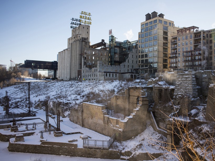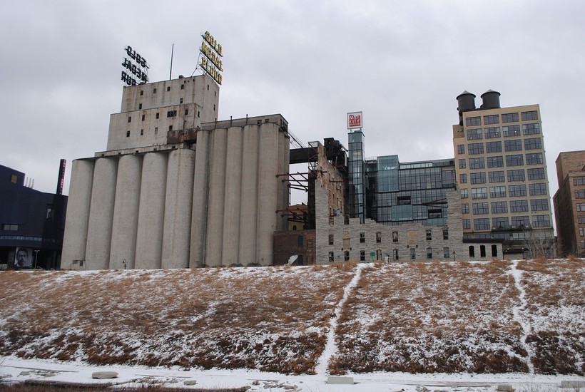 Еще мы зашли в парк Бум айленд, чтобы взглянуть на замерзающие искусственные водоемы. Местные говорят, что летом тут полно рыбаков. Кстати, Миннеаполис негласно зовется городом Мельницы, из-за того, что именно в этом парке находится древняя мельница Писбери. Согласно информации, многие годы она являлась крупнейшей в мире.