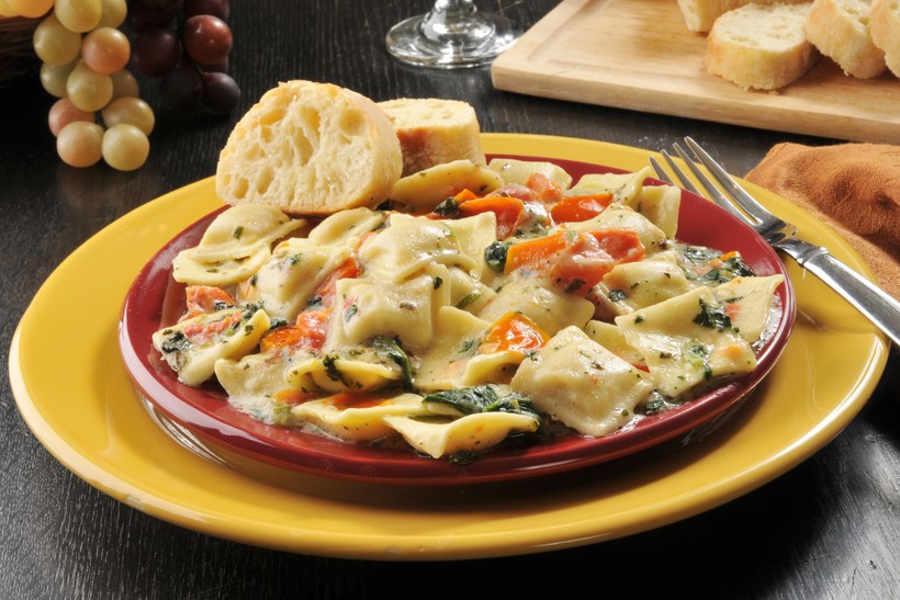 Да, много теста – но все блюда из муки грубого помола и с большим разнообразием компонентов. Да и вино, по-южному чуть более терпкое и яркое на вкус, отлично расщепляет жиры. Творожный сыр, томаты, морские гады, оливки, базилик. Есть где развернуться.