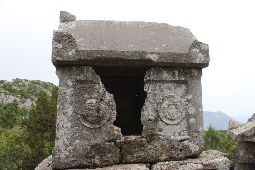 Далее по тропинке я пошла изучать основной Некрополь. Между прочим эта часть города не менее интересна, ведь хоронили там местную знать. На разбросанных по округе саркофагах, виднеются многочисленные барельефы, советую прогуляться мимо них и посмотреть на них поближе. Многие статуи и особо ценные саркофаги ждут своих ценителей античного погребального искусства все в том же Анталийском музее археологии.