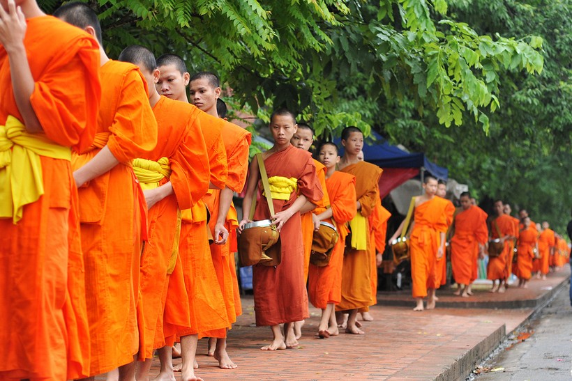 Спозаранку все туристы собираются посмотреть на процессию монахов, собирающих подаяние. Это зрелище прославило Луангпхабанг далеко за пределами Лаоса. Говорят, выглядит это завораживающе, но я всякий раз спал в это время.