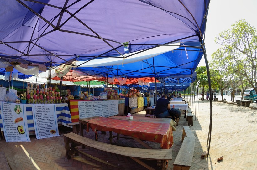В один из дней я всё же встал пораньше, чтобы сходить на утренний рынок – он работает всего несколько часов на рассвете, так что нужно было ловить момент. Торгуют на рынке преимущественно готовой едой, овощами и фруктами, но, таким как я приезжим, конечно, интереснее впечатлиться копчеными крысами, жареными личинками и всяком таким, что «Фуууу! Неужели они это едят?».