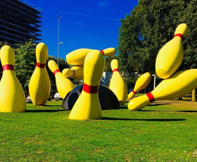 - Flying Pins - огромные желтые кегли, как будто летящие над землей.