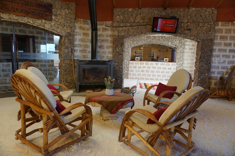 К выбору гостиницы отнеситесь внимательно, т.к. не забываем, что Уюни находится на высоте 3 600 метров над уровнем моря, а также, что это соляная пустыня: днем солнце палит нещадно (обязательно наносите крем от загара), а ночью могут быть заморозки до -10 и более. Поэтому, обратите внимание, что в гостинице есть обогреватели. Была в начале ноября, спала под 3мя одеялами и перед сном включали газовый баллон, чтобы немного нагреть помещение. Знаменитая фишка в Уюни - это соляные гостиницы, т.е. гостиницы, сделанные из соли! Остановиться в такой гостинице - очень интересный опыт. Они находятся примерно в 20 км от города Уюни. Здесь, конечно же тепло и комфортно. А вечером разжигают камины и царит невероятная атмосфера!