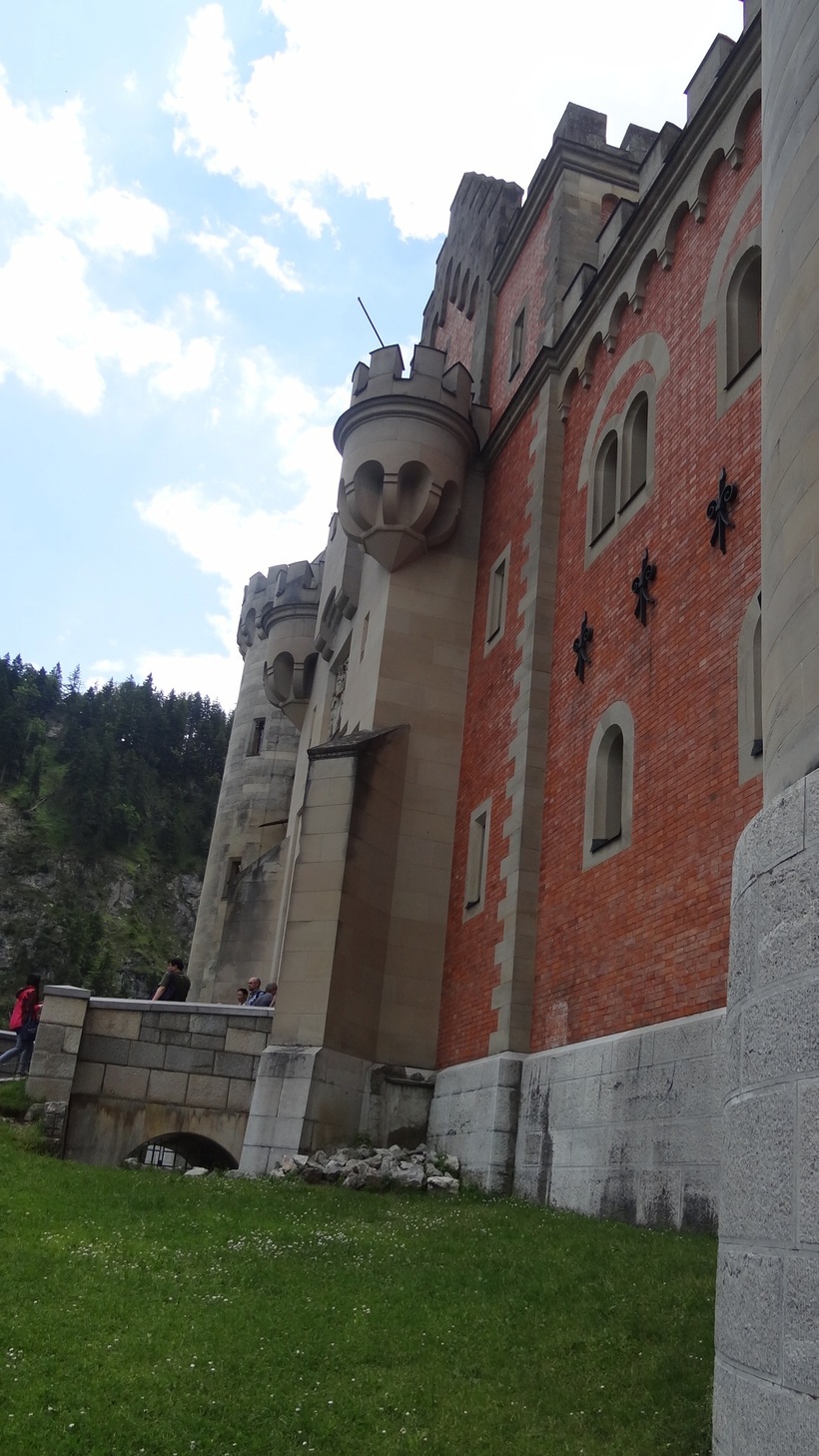 Кстати, белый Нойшванштайн не со всех сторон. Когда мы поднялись ко входу, нам открылся фасад красного цвета. Да и во внутреннем дворе можно увидеть другие цвета, помимо белого.