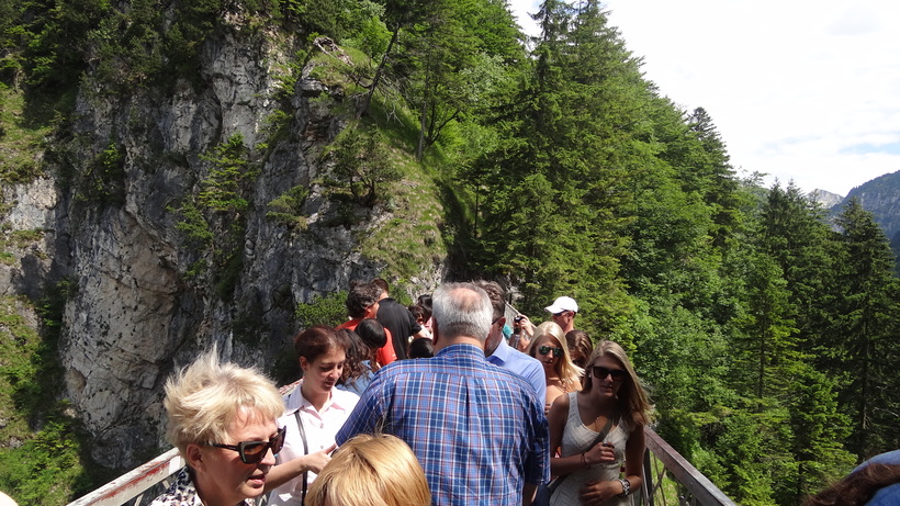 А вот это уже возможность пощекотать нервы. Этот визуально хлипкий железный мостик перекинут над пропастью, а туристов на нем столько, что это только усиливает ощущение, что он вот-вот рухнет под их тяжестью. Но виды на замок Нойшванштайн оттуда открываются просто шикарные.
