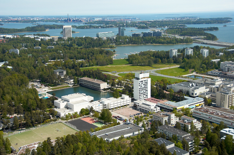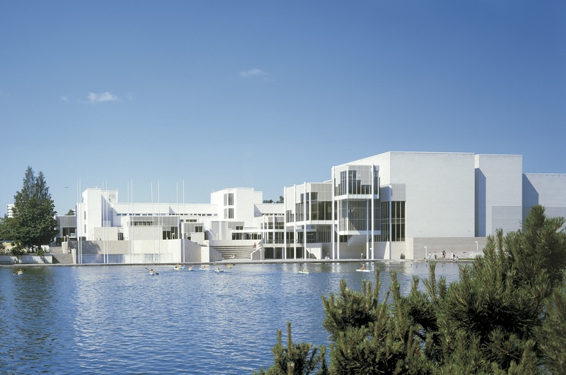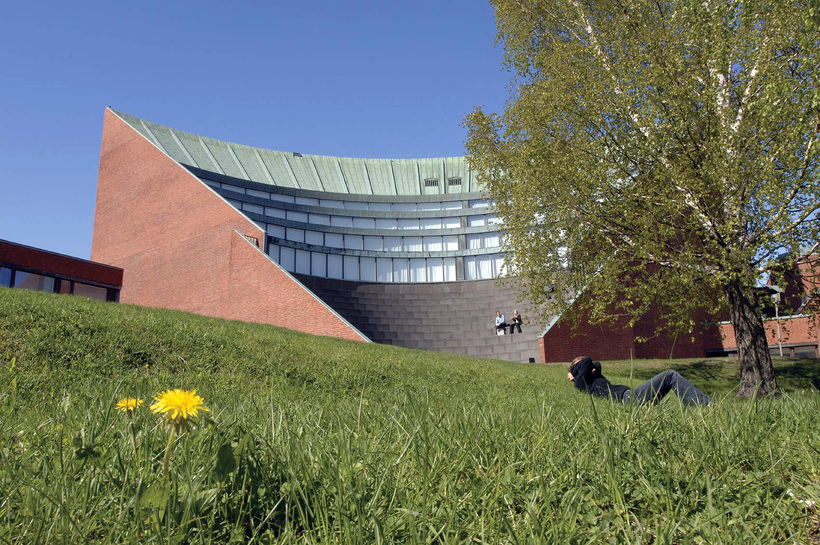 - Эспоо — молодежный город. Во многом это объясняется тем, что именно здесь находится один из ведущих финских университетов — Университет Аалто. Если вы не планируете обучаться в ближайшем будущем, вас вряд ли заинтересует его образовательная составляющая (хотя она очень высоко ценится во всем мире), но как минимум внимания заслуживает архитектурная сторона.