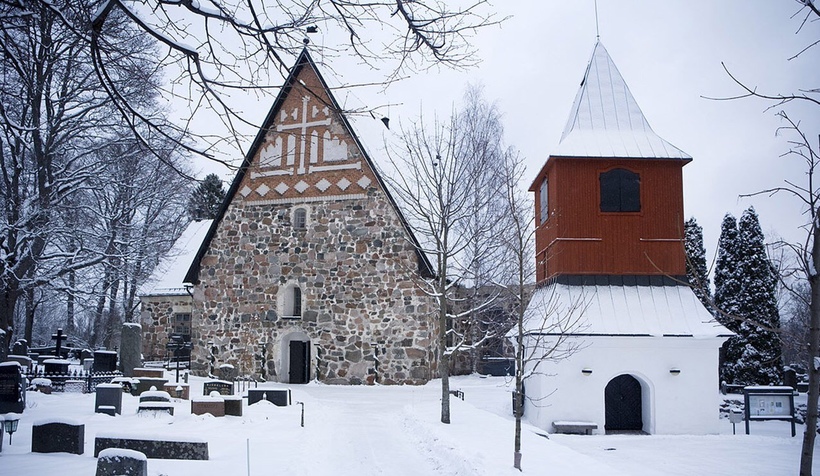 - Тем, кто любит старину, обязательно стоит отправиться в Espoon Vanha Kirkko. Это очень красивое своей простотой здание 15 века, которое, правда, несколько раз перестраивалось, но не стало при этом эклектичным, а сохранило единый стиль и очарование. Вокруг церкви есть древнее кладбище, а внутри нужно обратить внимание на фрески. В церкви регулярно проводят концерты, поэтому если вы, как и мы, выберете спокойный и вальяжный отдых в Эспоо, то посетите одно из представлений, это очень красиво и трогательно.