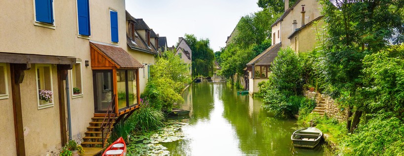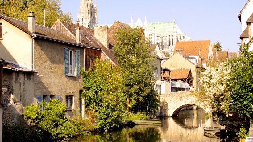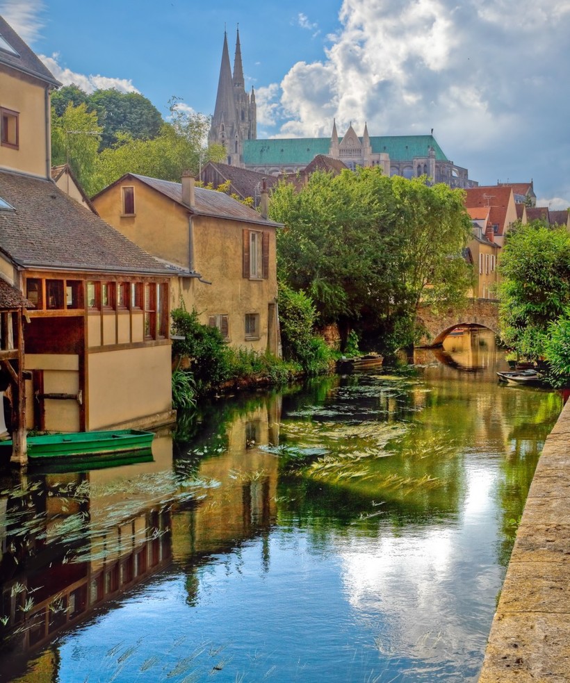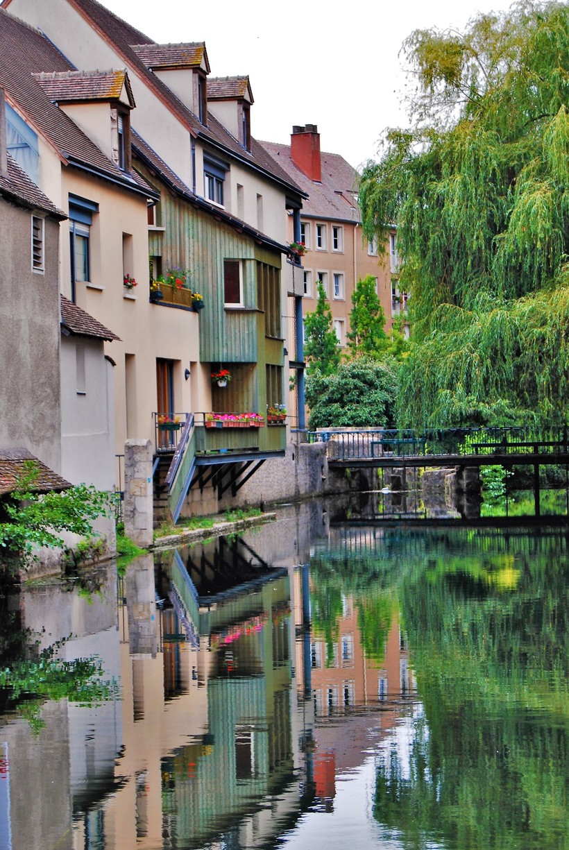 Перекусив, отправились дальше. В Шартре довольно много исторического фахверка, который всегда приятно созерцать. Даже есть домик с фахверковой башенкой. Побродив по улицам, мы по переходам и лестницам спустились к реке Эр. Во-первых, там классные мосты, во-вторых, очень приятно посмотреть на дома со стороны реки. У подавляющего большинства есть спуск к воде, а там пришвартована лодочка! Иногда – и не единственная.
