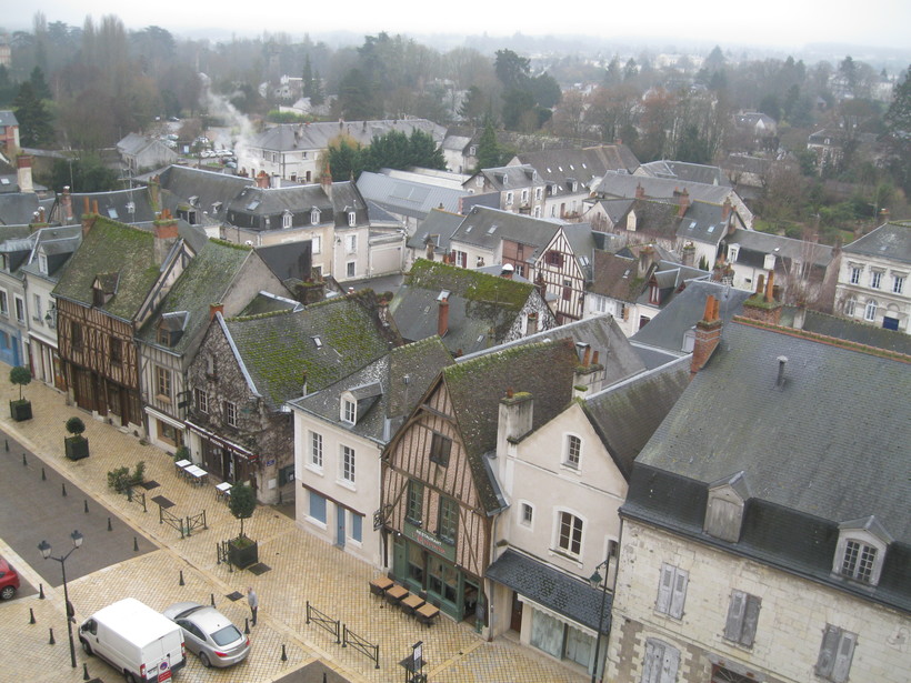 Мы приехали туда зимой, поэтому погода была дождливая и пасмурная, что не помешало нам насладиться пейзажами замка, города и широкой лентой Луары, на берегу которой и раскинулся Амбуаз.