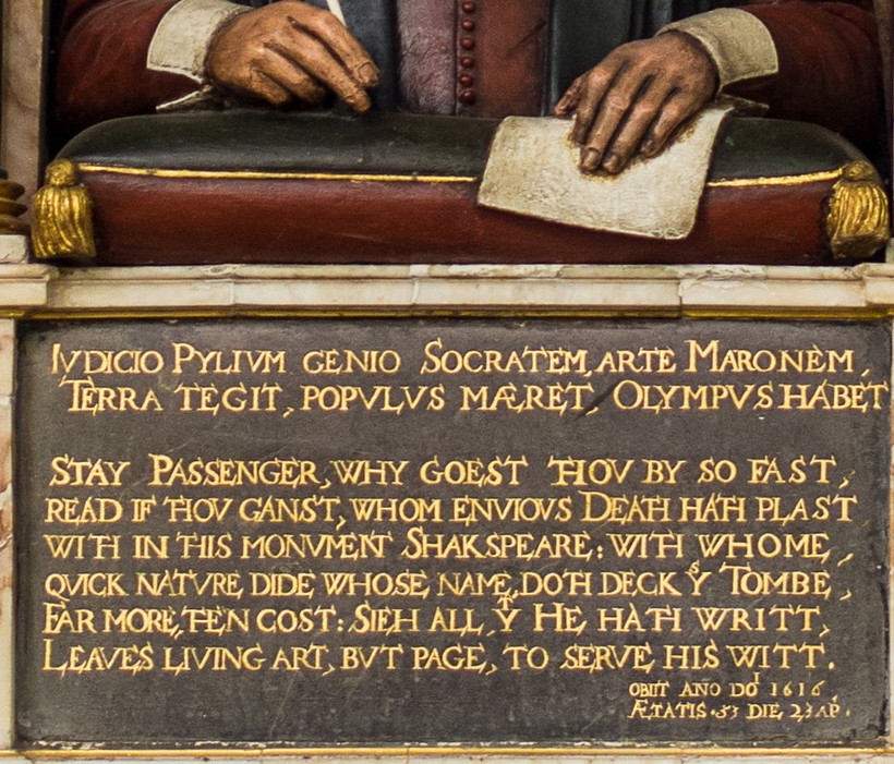 Вокруг этих строк также существует множество споров. Кто-то утверждает, что они написаны неким местным поэтом - автором эпитафий, другие же говорят, что они принадлежат самому Шекспиру.