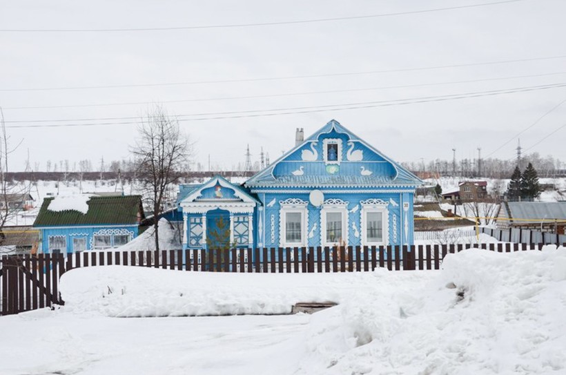 Что еще сказать про Алакаевку... В жизни я бы в нее не забралась, если бы не знакомства. Как уже сказала, по святым местам я специально не езжу, лесов в России полно, Лениным не интересуюсь. В остальном Алакаевка – типичное такое среднерусское село, не богатое, не бедное, так, серединка на половинку. Встречаются откровенные халупы, есть и прекрасно украшенные и свежепокрашенные домики – всё как везде. На улицах, в основном, асфальт вздыбленный или похожий на голландский сыр – с дырочками; а местами и вовсе нет асфальта, честные лужи.