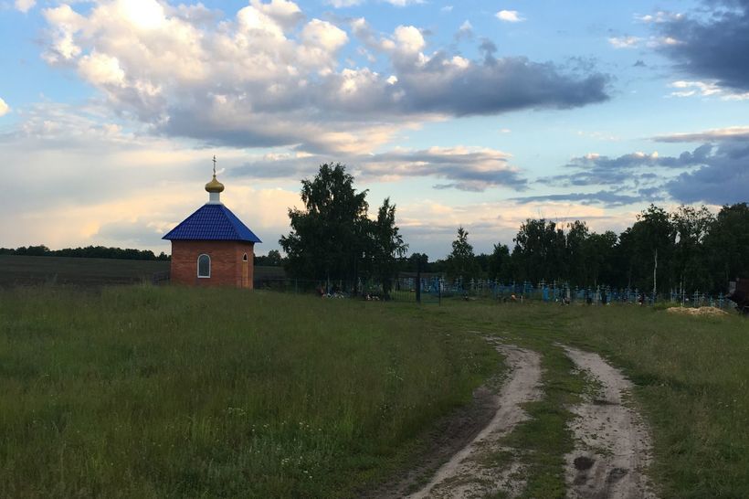 А вот куда нас хозяева сводили – так это к святому источнику Владимирской иконы Божьей матери. Для сельских жителей это предмет гордости. Я очень спокойно отношусь к таким объектам, поэтому просто вежливо поприсутствовала. Небольшая часовенка, довольно новая, стоит над источником; рядом – тихое кладбище с синими крестами. Дорога раздолбанная, поле за часовней. Оставим в стороне религиозное значение места; мне просто было там неплохо. Такая осенняя легкая тоска, от которой еще больше жить хочется.