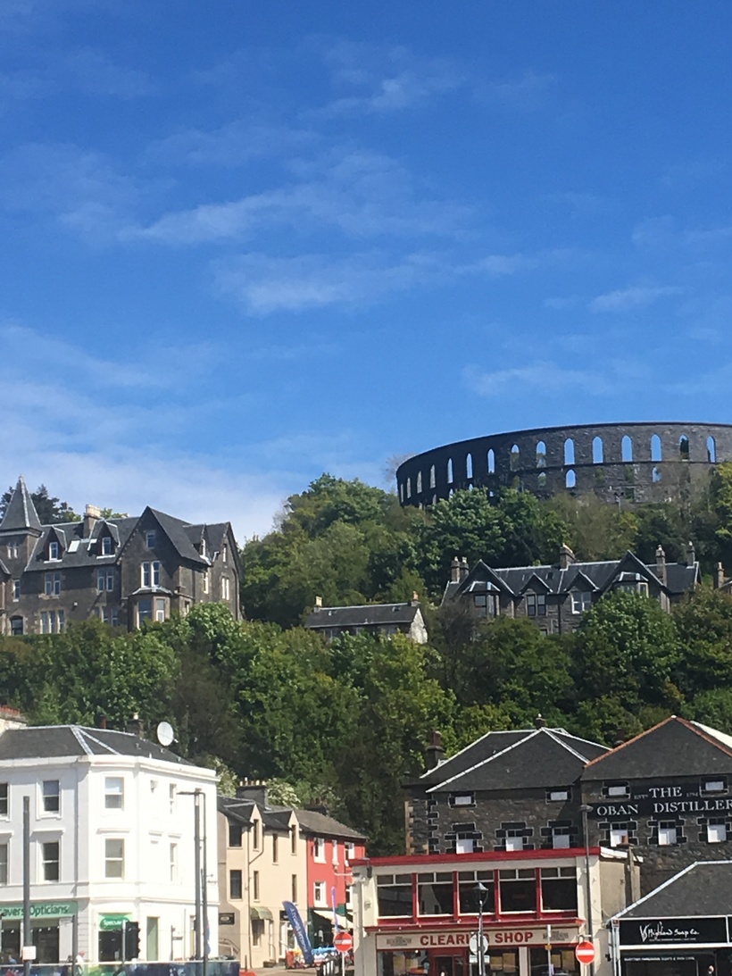 И тут Обан окончательно меня удивил. Я посмотрела на гору и увидела настоящий Колизей на холме. С пляжа и набережной его не видно. Поэтому я сразу его и не заметила. Это прекрасная достопримечательность города и народ довольно бодро поднимался в гору, хотя было достаточно жарко. Хорошо, что после моего обеда прошло некоторое время, иначе я бы не смогла осилить это восхождение.